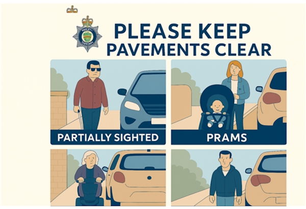 Good day all, A gentle reminder to please be considerate when parking, particularly when parking on pavements. Pavement parking can have a significant impact on many users, including people with prams, mobility scooters, pedestrians, and those who are partially sighted. By parking considerately, we can help ensure pavements remain safe, accessible, and able to be used as they were designed. Thank you for helping to keep our community safe for everyone.