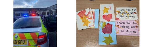 📚 Community Engagement at Willesley Primary School! 🚓 Yesterday, officers visited Willesley Primary School in Ashby to talk to the children about their “People Who Help Us” theme. The pupils had an amazing time asking questions—one even asked if we use giraffes in the police! 🦒 (Sadly, no giraffes yet! 😉) The children explored a police car up close, sat inside, and even heard the sirens. They thanked us with some beautiful pictures they had made for us. 💙 Why is this important? Mary 6633